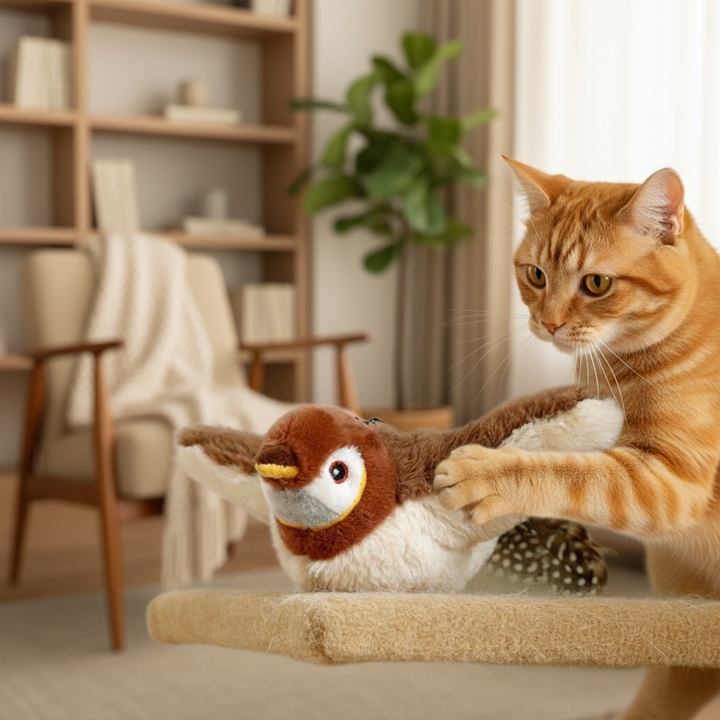 - Realistic Sounds & Movement: Makes chirping or jumping motions when played with, stimulating your pet’s curiosity and hunting instincts.
